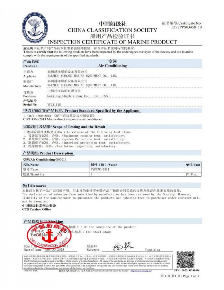 泰州越洋船舶設備有限公司多年專業從事艦船用空調、冷藏、冷凍設備、冷庫系統,通風安裝系統(空調通風,機艙通風,自然通風)等。本公司地處美麗的曲霞鎮工業園區,固定資產1200萬人民幣,占地面積1.5萬平方米左右,公司產品廣泛用于海軍驅逐艦護衛艦,補給艦,海警,醫療船,科考船等,如:“東方紅2“,“海大號”,“向陽紅06”,“向陽紅09”,“向陽紅03”,“大洋1號”,“東方紅3”,“向陽紅18”,“向陽紅52”,地質級科考船“業冶錚”號海洋平臺。